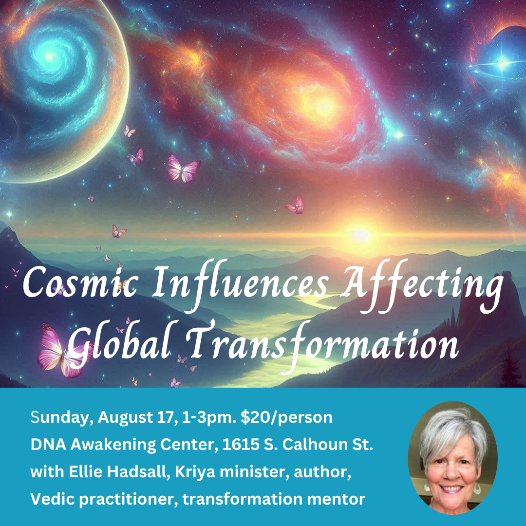 This August workshop in my Transformational Series will review cosmic influences impacting current life on Planet Earth.